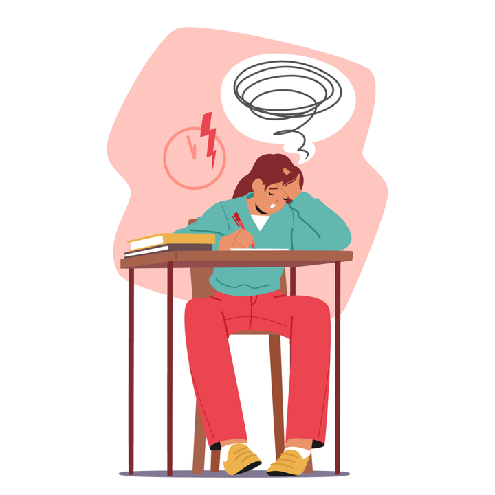 与此同时,她的睡眠变得很差,入睡困难且多梦。考试对她来说已成噩梦,会出现撕书、看到试卷就头痛、手抖甚至躲到课桌下的情况。