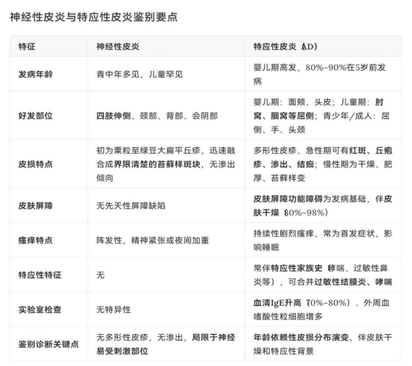 儿童四肢伸侧出现局限性苔藓样皮损,往往让医生面临诊断抉择。小忆的皮疹分布虽不符合典型特应性皮炎的屈侧好发特征,但其婴儿期曾有配方奶相关的面部湿疹史,且皮损呈现特应性进程的三阶段特征:急性期(红斑渗出)→亚急性期(鳞屑结痂)→慢性期(苔藓样变)。这与常见于成人的神经性皮炎有所不同——后者皮损多为孤立性,且瘙痒呈阵发性夜间加重。这种“瘙痒-搔抓-皮损加重-更痒”的恶性循环,是疾病迁延不愈的核心,也需要我们在临床中格外警惕。