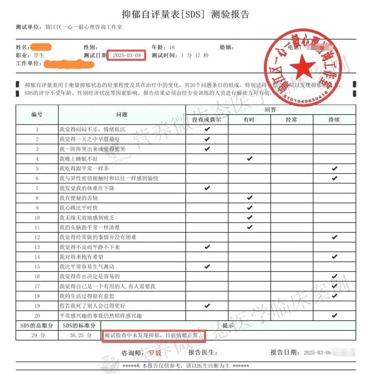 第三个月,我们开始探讨学习目标并制定循序渐进的计划。他的睡眠稳定在8小时左右,并开始每天运动半小时。那些困扰他的头疼、手脚发麻、胸闷等症状基本消失。他开始主动整理房间,并愿意与父母沟通了。